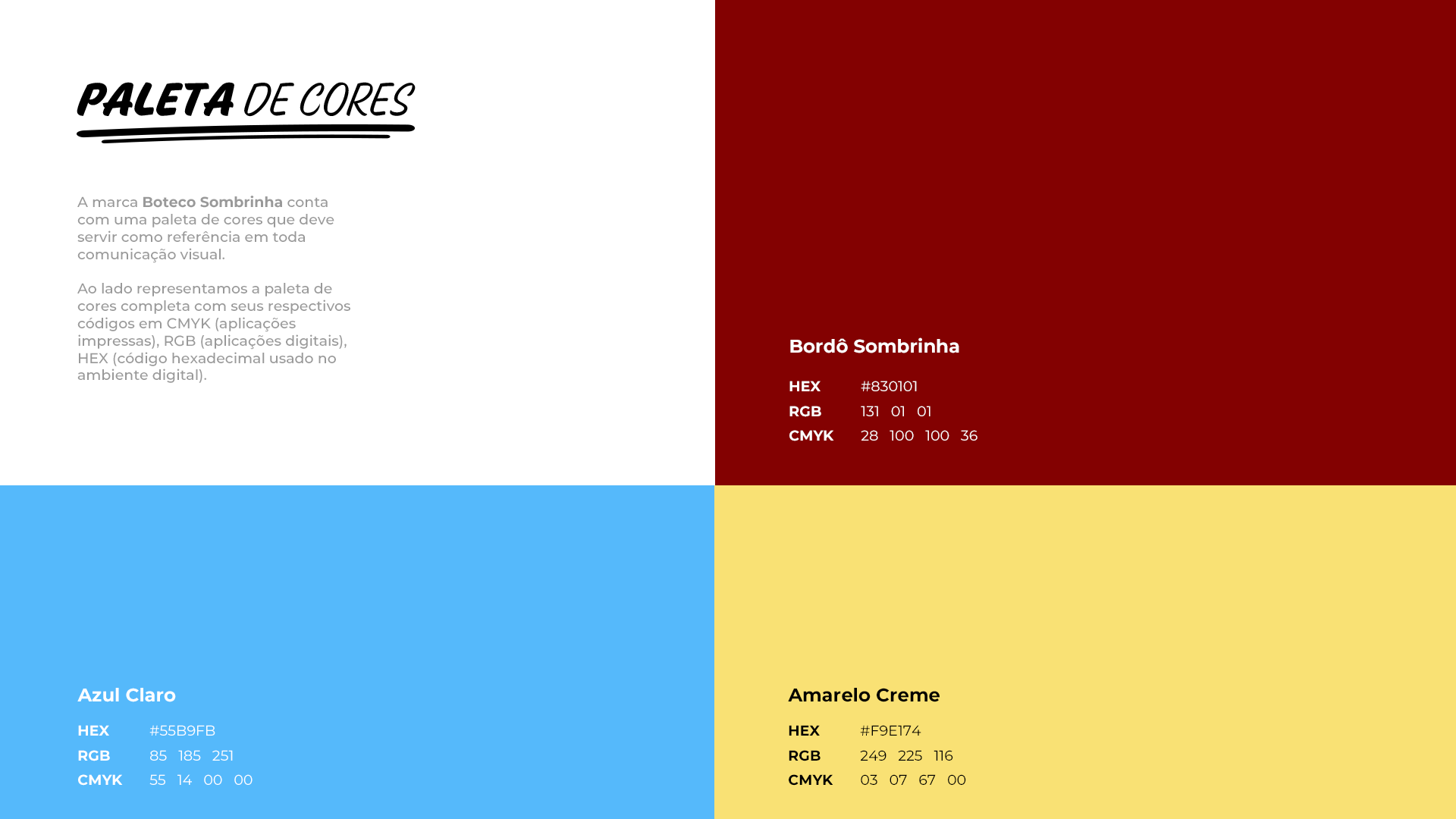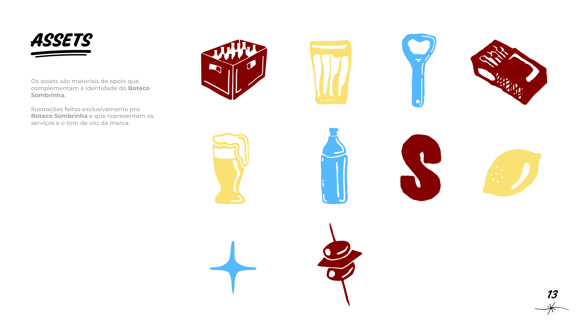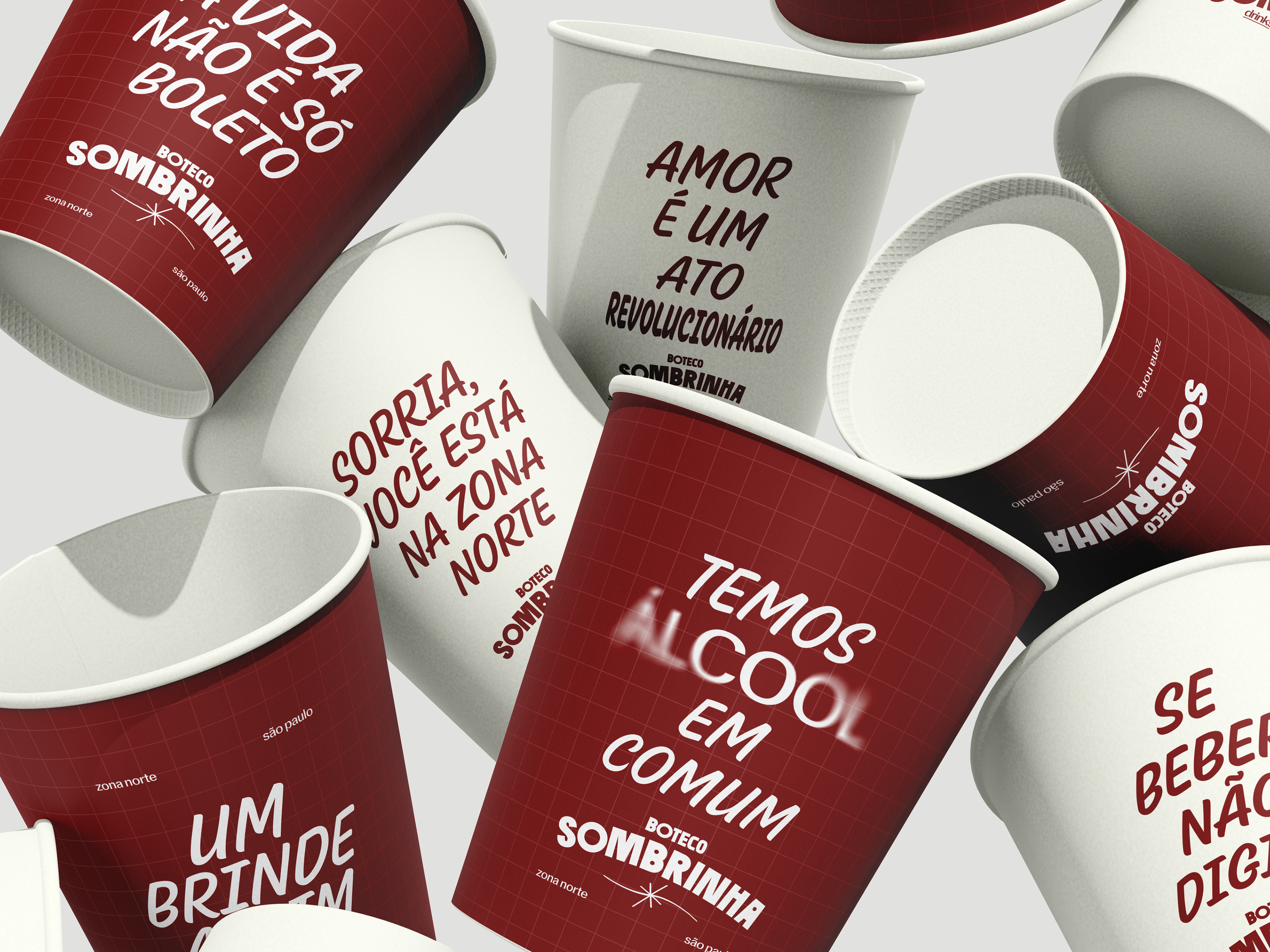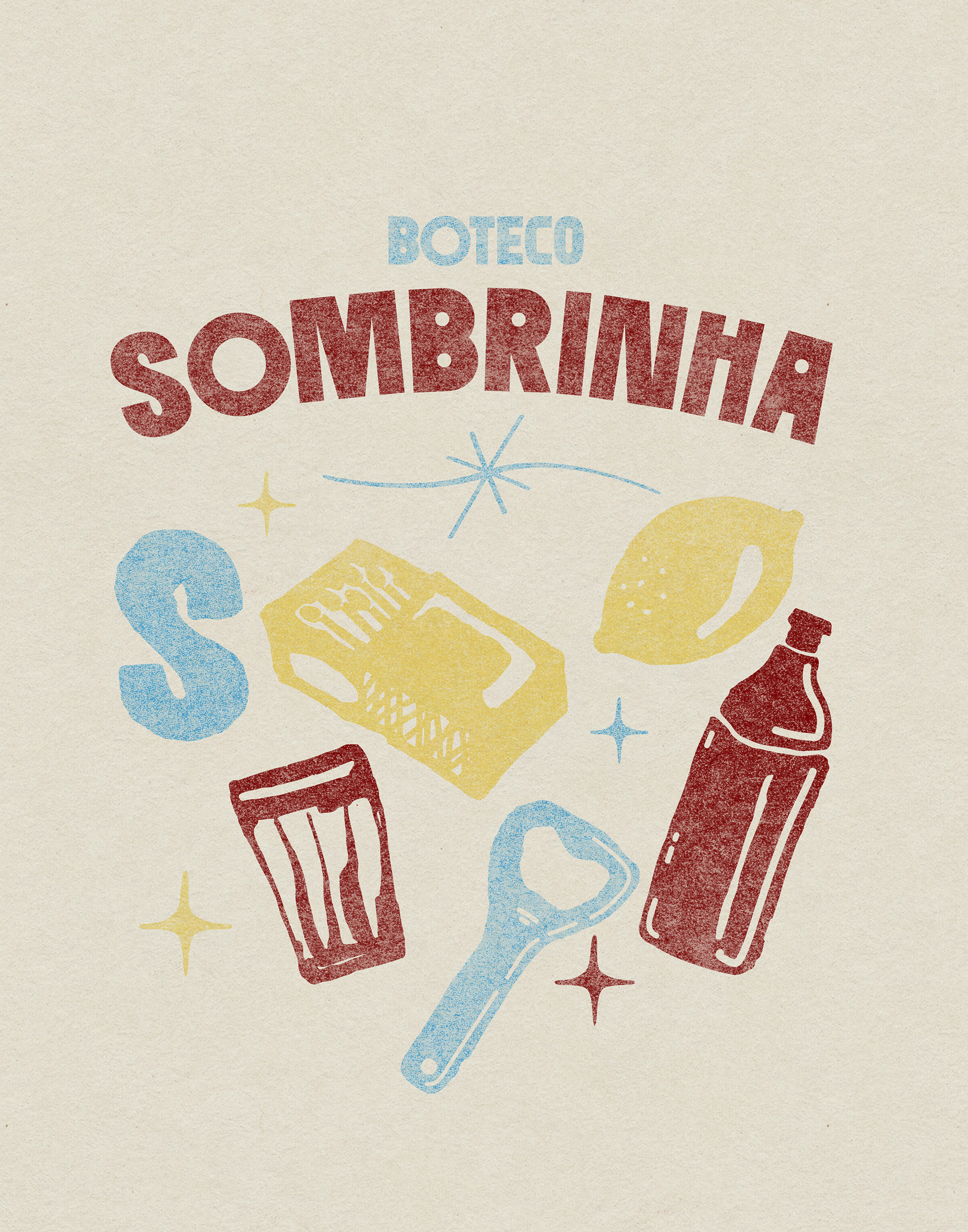 Branding completo para o Bar Boteco Sombrinha. Desenvolvemos desde o conceito de marca, visual, e materiais online (peças digitais) e material offline (cardápio, jogo americano, bolachas, etc).